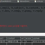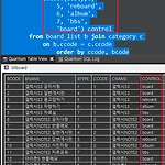 ** b.btyped이, 5이면 reboard, 6이면 album, 7이면 bbs를, 그밖엔 board를 'control이란 컬럼으로 출력하라는 말.sql계의 if-else문이라고 생각하면 쉽다12345678910select b.bcode, b.bname, b.btype, b.ccode, c.cname, decode(b.btype, 5, 'reboard', 6, 'album', 7, 'bbs', 'board') control from board_list b join category c on b.ccode = c.ccode order by ccode, bcode; Colored by Color Scriptercs * DTO에 control 컬럼을 추가했다. (DTO는 테이블과 일대일 매칭되지 않아도 된다)..